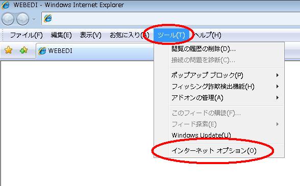 メニューから [ ツール (T)] − [ インターネットオプション (O)] を選択します。