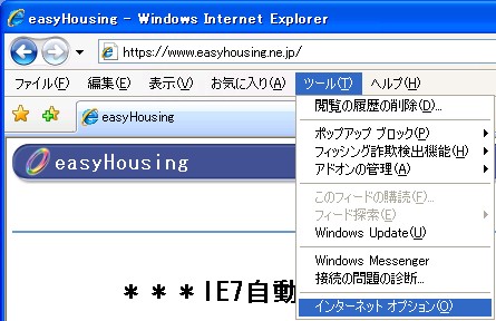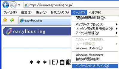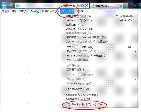 @メニューバーの「ツール」−「インターネットオプション」を開きます。