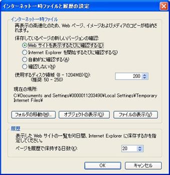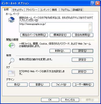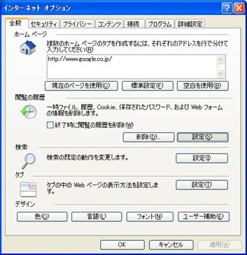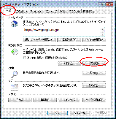 G[全般]タブを選択し、『閲覧の履歴』の『設定』ボタンをクリックしてください。