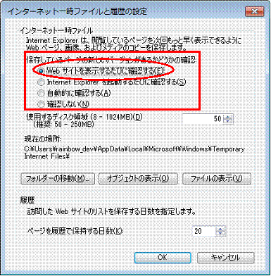 →「Webサイトを表示するたびに確認する」にチェックします。