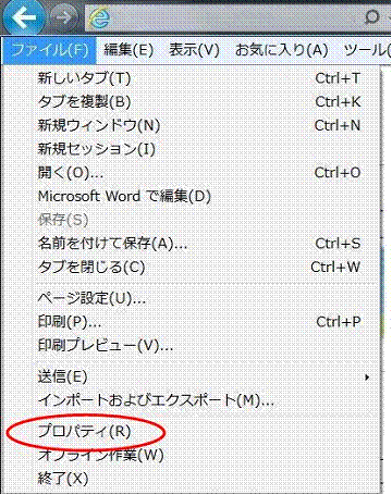 K購買WEBEDI画面にて、メニューバーの「ファイル」−「プロパティ」を開きます。