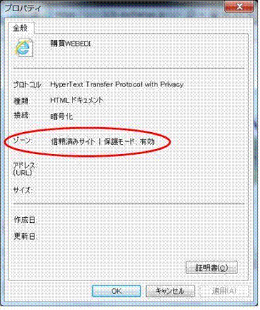 ・プロパティ画面にて、「信頼済みサイト」と表示されることを確認してください。